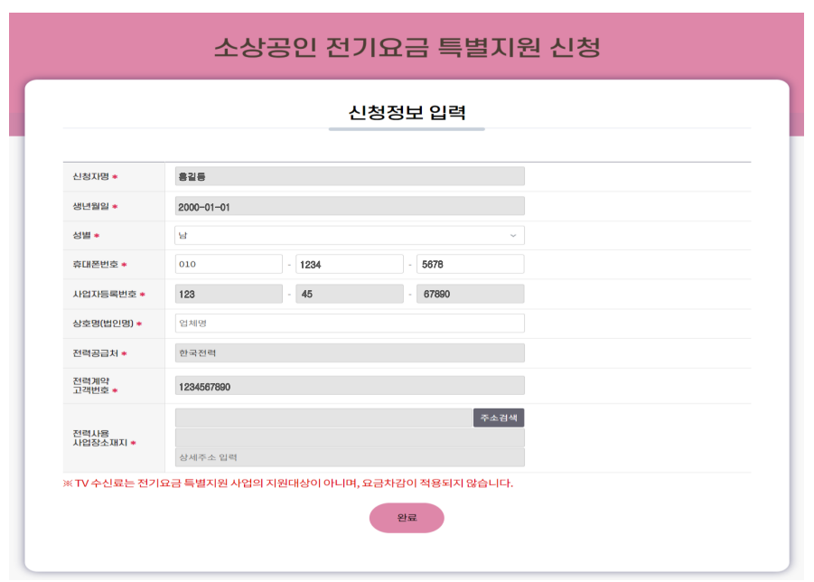 ※ 전기요금 고객번호를 몰라도 입력한 번호로 신청 진행 가능
