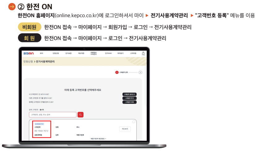 ② 고객번호를 모르는 경우 한전 홈페이지 또는