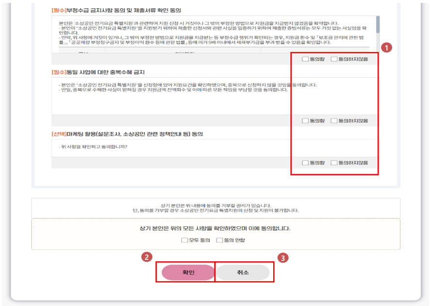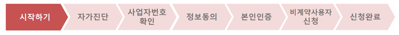 ② 자가진단: 항목 체크 후 [확인]을 클릭하여 사업자번호 및 고객번호 확인 단계로 이동