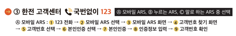 ③ 한전 고객센터로 문의(국번없이 123)하시면 전기요금 고객번호 확인 가능