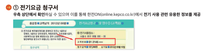 ① 전기요금 영수증 우측 상단에 표시되어 있으며,