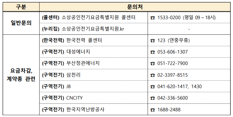이 사업에 대한 자세한 내용은 소상공인 전기요금 특별지원 콜센터(1533-0200)로 문의하시면 안내받으실 수 있습니다.