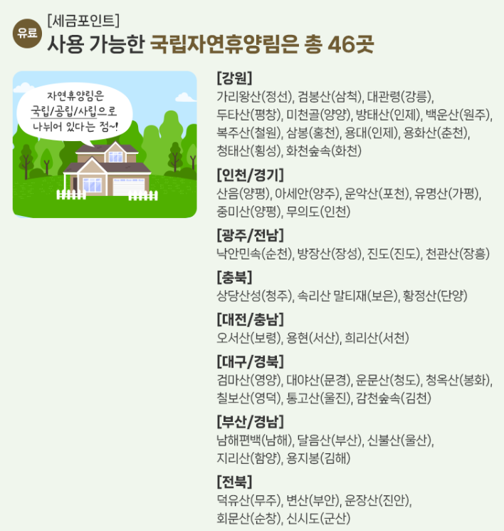 ■ 세금포인트 사용 가능 국립자연휴양림