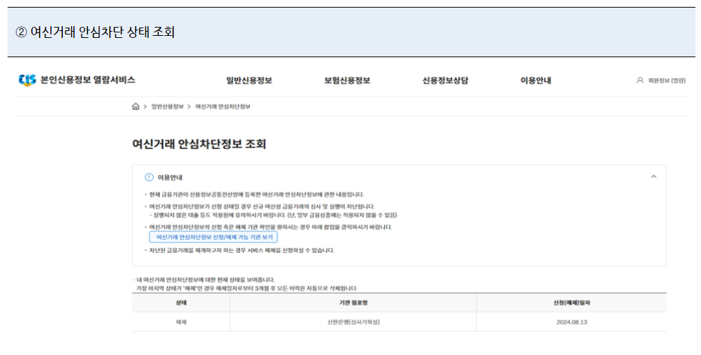 2. 여신거래 안심차단 해제