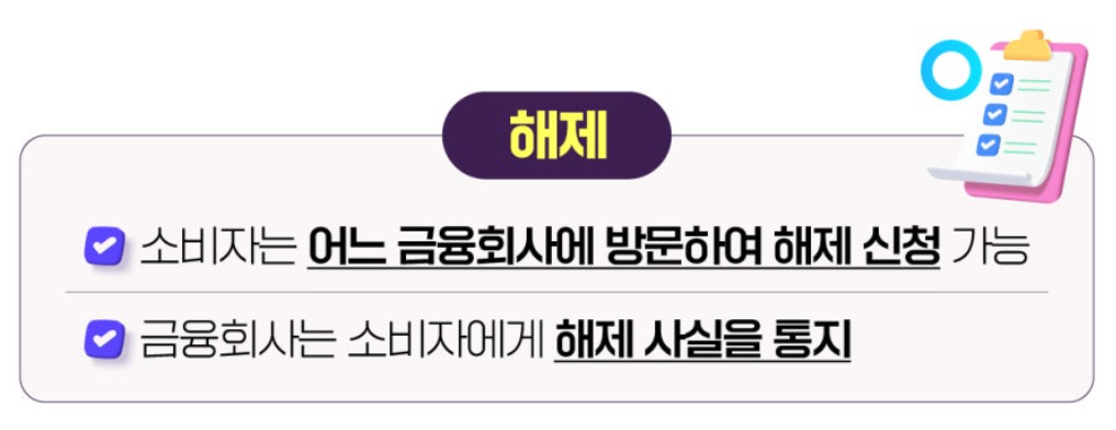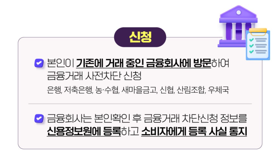 ■ 차단 서비스를 신청한 후 금용상품이나 신용카드를 사용해야 하는 경우, 다시 해제를 해야 하는 번거로움이 있을 수 있습니다.