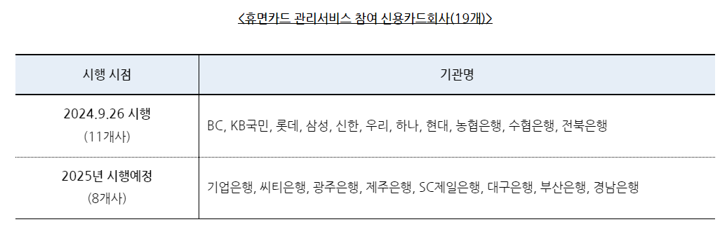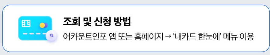 '내카드 한눈에'에서 1년 이상 이용하지 않은 휴면카드를 한 번에 조회하고, 해지하거나 이용 신청할 수 있습니다.