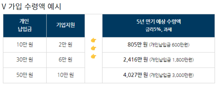 근로자가 납입한 금액의 20%를 기업이 추가로 지원 (*월 납입금 기준)