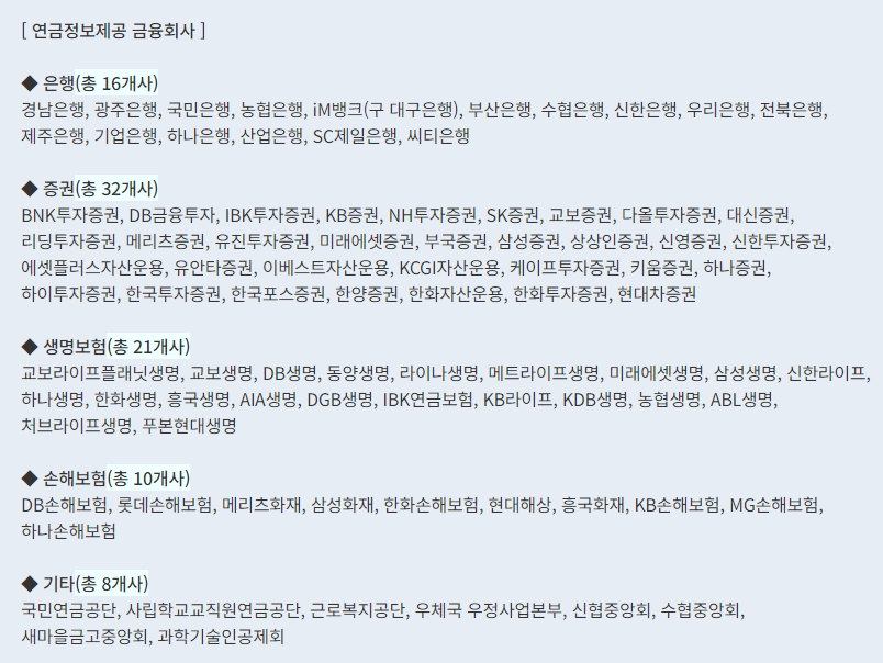 Q. 연금정보를 제공하는 금융회사는 어디인가요?