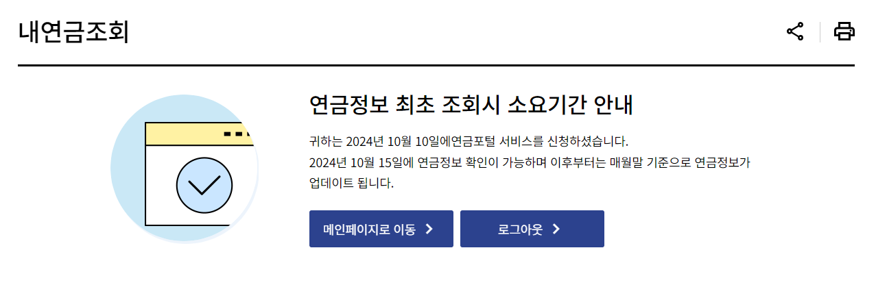 최초 조회 시 3영업일 소요되며, 이후부터는 매월말 기준으로 연금정보가 업데이트 됩니다.