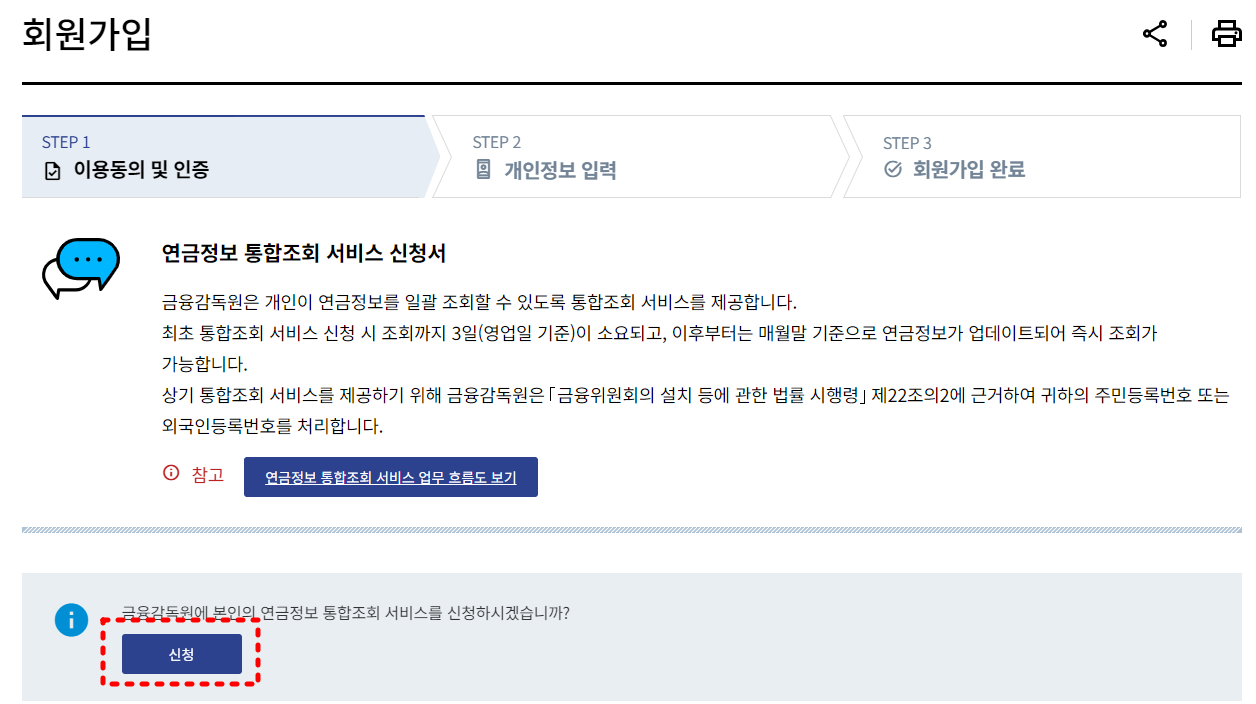 ※ 회원가입과 동시에 내 연금정보 조회가 자동으로 신청됩니다.