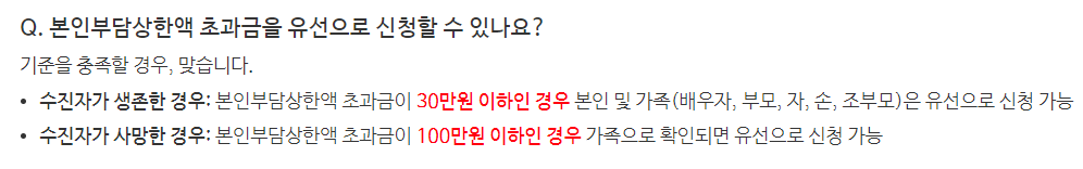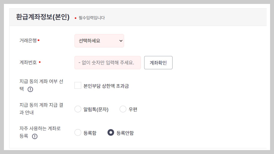 · 본인부담상한액 초과금 신청을 완료하면, 본인 신청 계좌로 보통 7일 이내에 지급됩니다.
