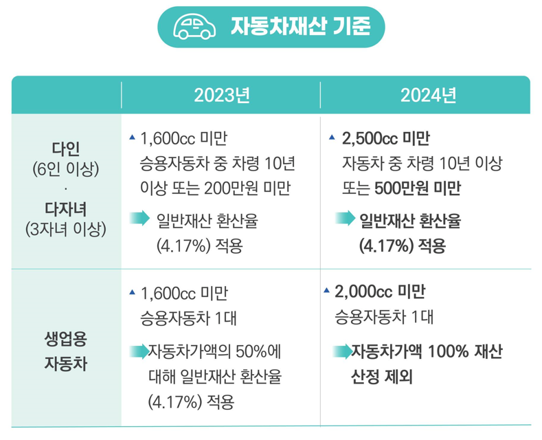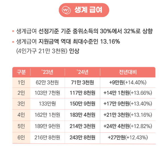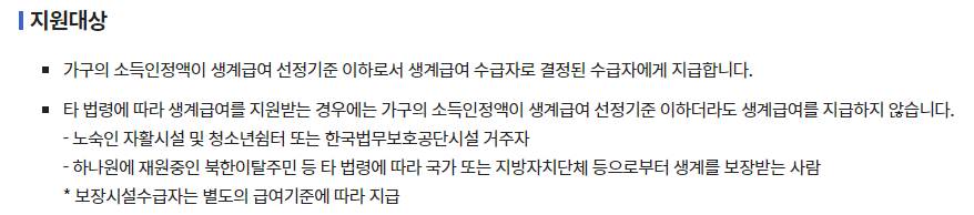 · 급여액은 가구의 구성원 수, 소득, 재산 등에 따라 달라집니다.