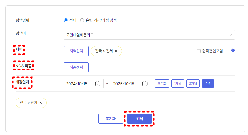 내일배움카드를 발급받은 후, 훈련 과정을 신청하려면 직업훈련포털에서 원하는 학원의 강의를 검색할 수 있습니다.