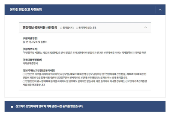 온라인 신청에 관한 사전 동의가 추가되었습니다.