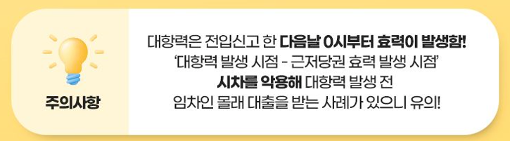 대항력은 전입신고를 마친 다음날 0시부터 효력이 발생하므로, 이사 후 가능한 빨리 신고를 마치는 것이 매우 중요합니다.