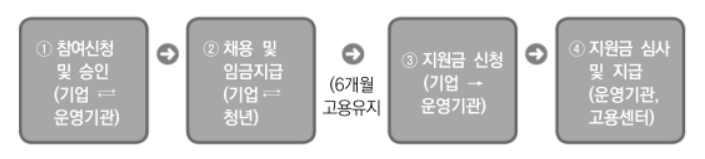 1. 기업 신청 : 기업이 청년 자격 요건을 확인 후 참여 신청 → 운영기관 승인