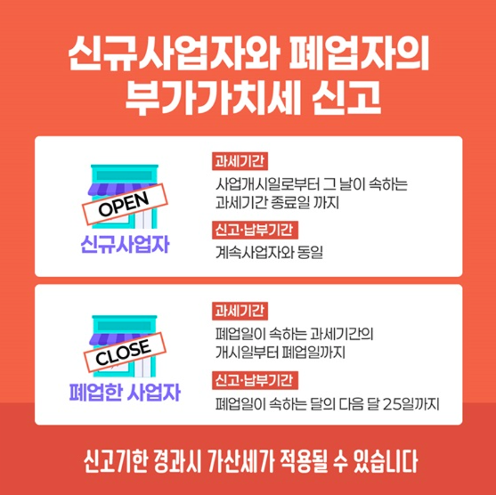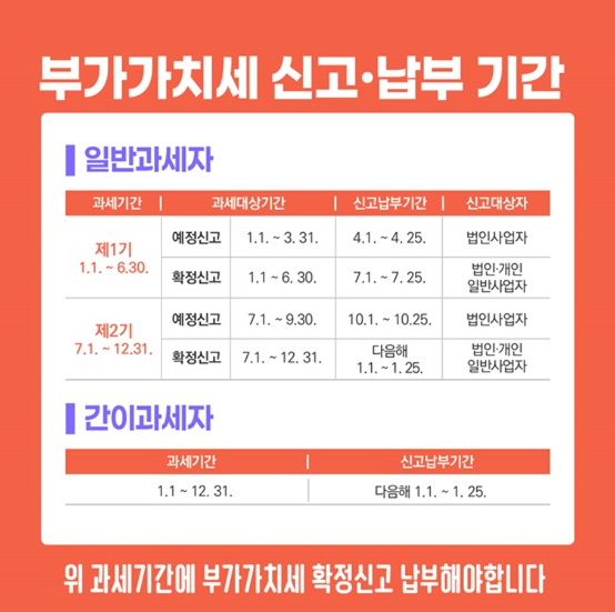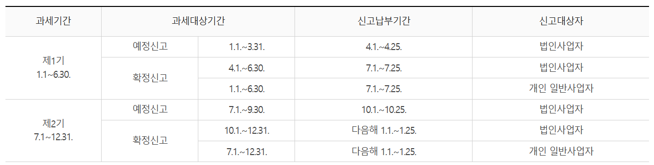 ※ 부가가치세 신고 기간에 대한 자세한 내용은 아래의 표를 참고하시기 바랍니다.