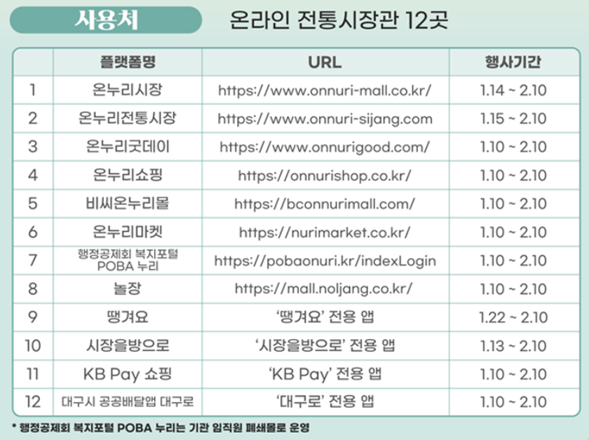 · 전통시장: 온누리상품권 가맹점으로 등록된 전통시장 내 상점.