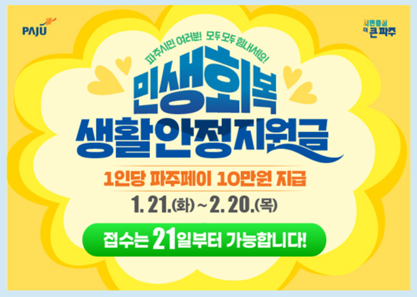 안녕하세요! 오늘은 경기 파주시에서 지급하는 민생회복 생활안정지원금에 대한 소식을 전해드리겠습니다.